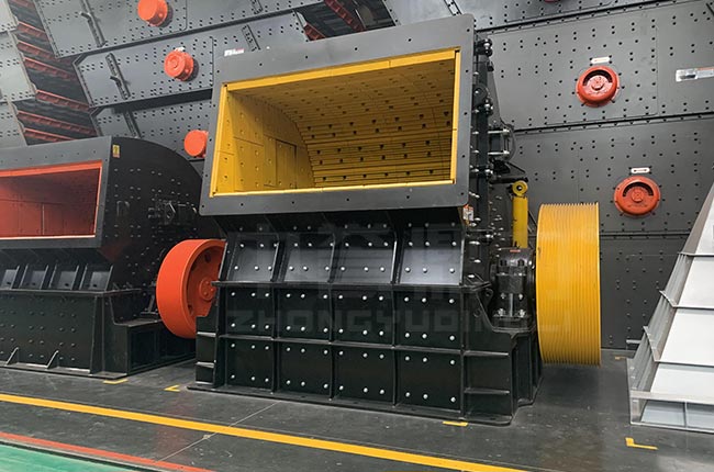 重錘破由機(jī)體、襯板、上機(jī)殼、錘頭、轉(zhuǎn)子軸、破碎腔、活動(dòng)襯板等部件組成。其中活動(dòng)襯板位于出料口處,通過(guò)調(diào)節(jié)活動(dòng)襯板可以控制出料粒度的大小。