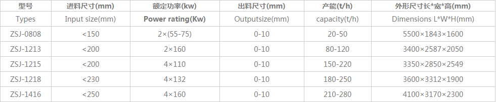 ZSJ雙轉(zhuǎn)子制砂機(jī)參數(shù)規(guī)格: