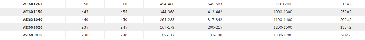 立軸式?jīng)_擊式制砂機(jī)參數(shù)規(guī)格: