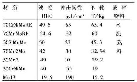 水泥熟料、石英石磨料以切削磨損為主,則選材時(shí)要考慮材料的硬度。如以高沖擊的塑性變型或疲勞磨損為主,則要考慮材料的韌性。