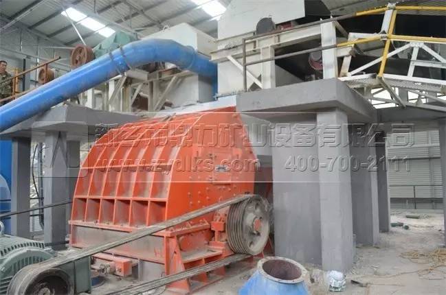 上圖為生產(chǎn)線上配置的頭破設備,選用的型號為內(nèi)目前錘式破碎機單臺產(chǎn)量的PCZ2125破碎機設備,單臺時產(chǎn)量可以達到2500噸以上,是由我們公司自主研發(fā)生產(chǎn)的。
