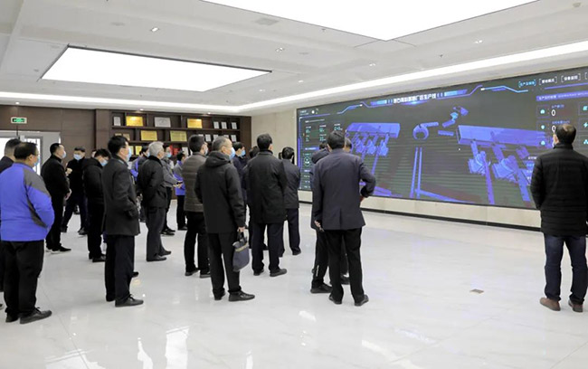 在中譽鼎力智能裝備公司廠區(qū),張治民董事長向各位導詳細介紹了中譽鼎力數(shù)據(jù)、“五位一體”循環(huán)建材產(chǎn)業(yè)園及一體化智能生產(chǎn)車間。