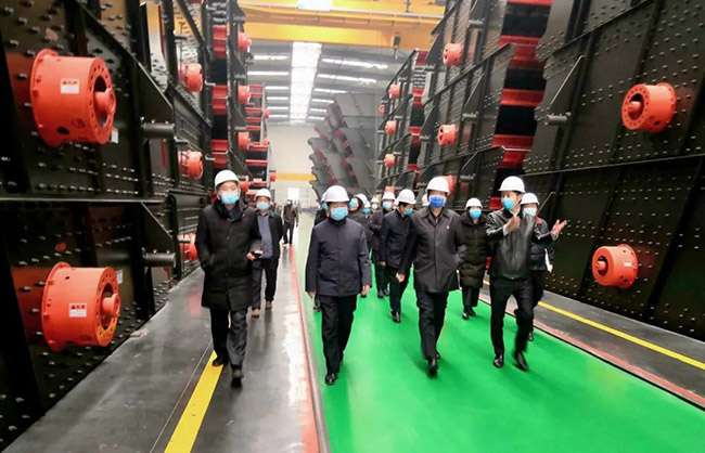 在中譽(yù)鼎力智能裝備公司廠區(qū),張治民董事長向各位導(dǎo)詳細(xì)匯報公司復(fù)工復(fù)產(chǎn)情況,并介紹中譽(yù)鼎力“五位一體”循環(huán)建材產(chǎn)業(yè)園及一體化智能生產(chǎn)車間。