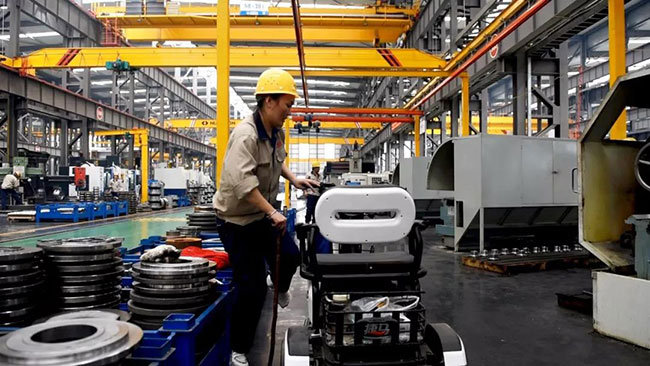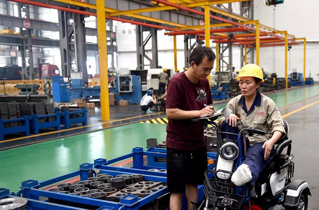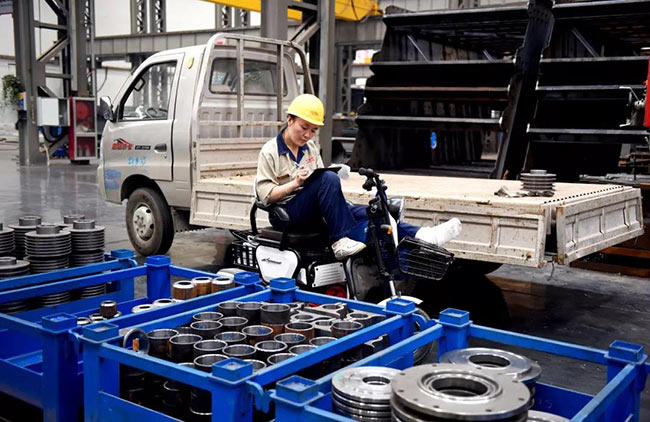 7月22日上午10點,中譽鼎力智能裝備生產(chǎn)車間機加工區(qū)新到了一批外協(xié)件,張衛(wèi)霞坐在電動三輪車上依次仔細地檢查著每一個零部件:觀察、測量、記錄、填單……嚴謹?shù)馁|(zhì)檢流程沒有因為腳受傷而有所耽誤。