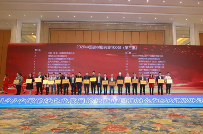 11月5日-6日,由中建筑材料企業(yè)管理協(xié)會舉辦的“2020年中建材企業(yè)發(fā)展論壇暨2020中建材企業(yè)500強系列活動發(fā)布會”在安徽合肥隆重舉行。會上,中譽鼎力軟件科技股份有限公司榮獲“2020中建材服務(wù)業(yè)100強”稱號。