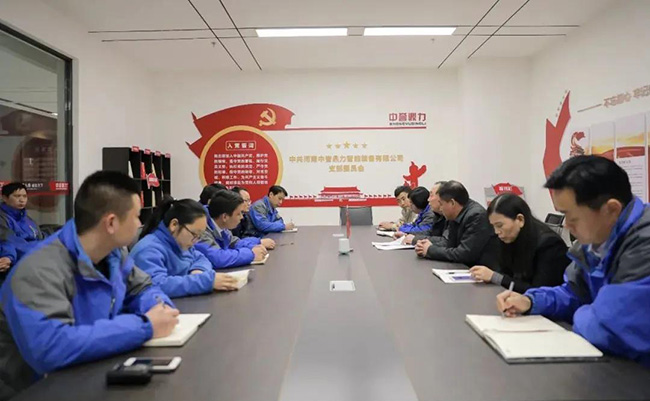 中譽(yù)鼎力黨建指導(dǎo)員王士存,新鄉(xiāng)市中譽(yù)鼎力軟件科技股份有限公司總經(jīng)理?xiàng)钋,河南中譽(yù)鼎力智能裝備有限公司行政副總經(jīng)理崔玉清、營(yíng)銷副總經(jīng)理王春燕、生產(chǎn)副總經(jīng)理李、黨支部書記、企管部長(zhǎng)吳澤朋及各部門20余位黨員代表參加會(huì)議。