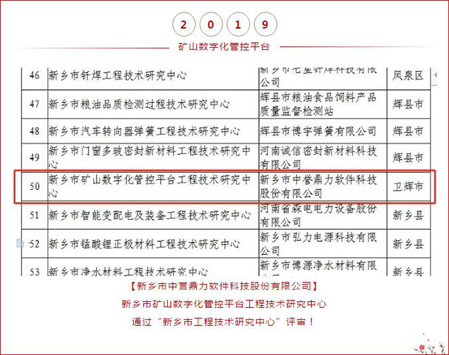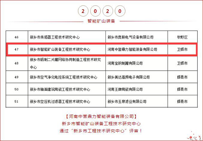 根據(jù)《新鄉(xiāng)市市級工程技術(shù)研究中心管理暫行辦法》(新科計〔2016〕33號)的有關(guān)規(guī)定,市科技局組織對申報的新鄉(xiāng)市工程技術(shù)研究中心開展了會議評審和現(xiàn)場審核。日前,經(jīng)局長辦公會研究決定,及為期7天的公示,認定86家工程技術(shù)研究中心為2020年度新鄉(xiāng)市工程技術(shù)研究中心。河南中譽鼎力智能裝備有限公司建設(shè)的“新鄉(xiāng)市智能礦山裝備工程技術(shù)研究中心”入選!這也是中譽鼎力次進入新鄉(xiāng)市工程技術(shù)研究中心名單!