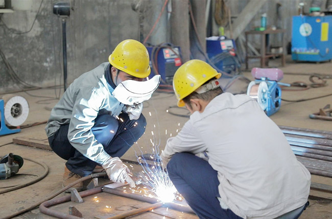 組對(duì)工人不僅要有識(shí)圖知識(shí)、常用金屬材料及熱處理知識(shí)、矯正(復(fù)合)變形原材料及一般結(jié)構(gòu)件的能力,會(huì)計(jì)算展開料長(zhǎng),還得會(huì)使用維護(hù)剪床、氣割、電焊機(jī)等設(shè)備,并進(jìn)行位置定位焊、鉚接、螺紋連接,具備檢驗(yàn)尺寸、形狀位置等能力。