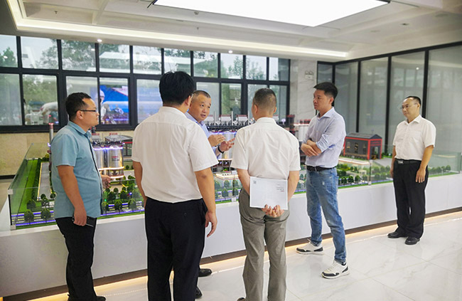 隨后,考察團(tuán)來到中譽(yù)鼎力智能化展示,實(shí)地參觀了中譽(yù)鼎力多位一體循環(huán)建材產(chǎn)業(yè)園項(xiàng)目沙盤,并觀看了公司相關(guān)介紹。