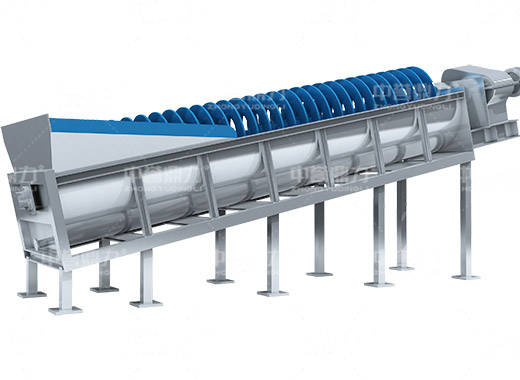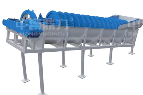 電動(dòng)機(jī)帶動(dòng)螺旋開始轉(zhuǎn)動(dòng),砂石進(jìn)入到水洗槽中,在螺旋葉片的帶動(dòng)下翻轉(zhuǎn),砂石快速的與水?dāng)嚢枞诤,使物料中的泥土等雜質(zhì)與砂分離,清洗掉的雜質(zhì)隨著溢流管流出,清洗干凈的砂石在螺旋葉片的帶動(dòng)下,推到高出的出料口排出水洗槽,完成砂石清潔。