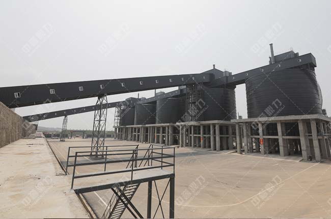 4、圓形儲料倉對面設(shè)有成品料緩沖庫,通過輸送機送至各自成品料平庫內(nèi),可實現(xiàn)淡季存料、旺季銷售,節(jié)省轉(zhuǎn)運費用,避免用料高峰期無料可尋。