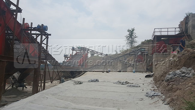 從生產(chǎn)現(xiàn)場(chǎng)我們可以看到,此條日產(chǎn)1500噸砂石料生產(chǎn)線部都是選用我們公司的設(shè)備,原料和成品料之間部都是用皮帶輸送機(jī)傳輸?shù),生產(chǎn)流程是流暢,可以自動(dòng)化的將成品料生產(chǎn)出來(lái),減少了使用額外附加設(shè)備的幾率。