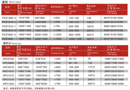 重型錘式破碎機及型破碎機型號參數(shù)
