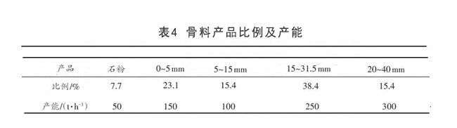 單獨(dú)計算骨料生產(chǎn)線各個產(chǎn)品所占份額及處理量見表4。