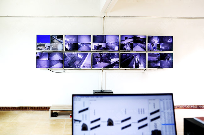 監(jiān)控室顯示生產(chǎn)線各個角落的情況
