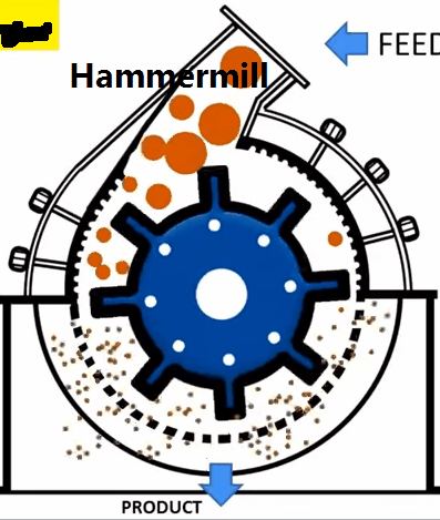 4、小于出料口的物料被排出機(jī)外,大于出料口的料塊在再次受到錘頭的沖擊和研磨,直至小于出料口后被排出。